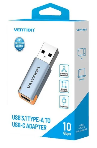 Adapter USB Vention CUAH0, USB-A 3.1 męski do USB-C żeński (szary)