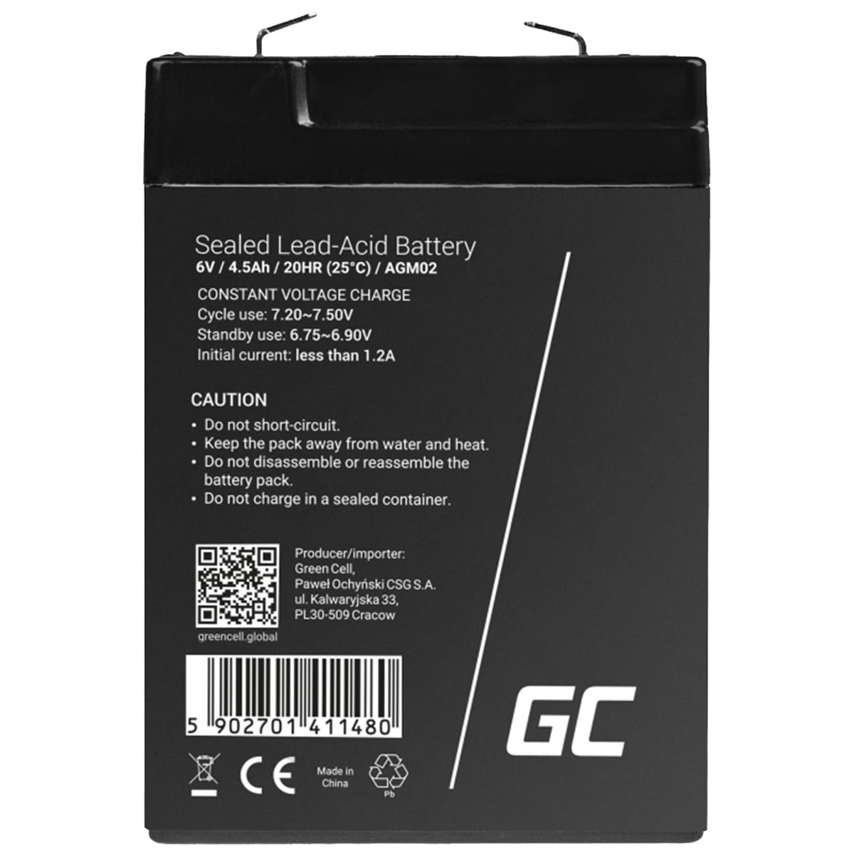 Bezobsługowy Akumulator AGM VRLA Green Cell AGM02 6V 4.5Ah (do systemu alarmowego, kasy fiskalnej, zabawki)