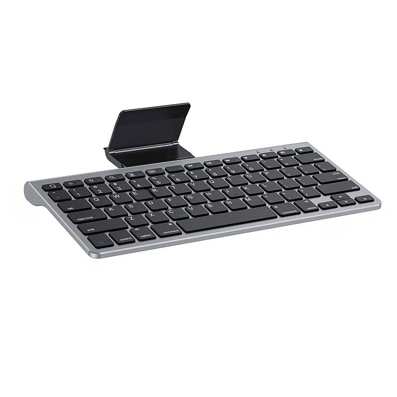 Teraz możesz jeszcze wygodniej pracować, robić notatki lub po prostu korzystać z Internetu. Klawiatura została wyposażona w wysuwany uchwyt, na którym stabilnie ustawisz swojego smartfona lub iPada. Podstawka jest kompatybilna z urządzeniami o przekątnej 4-11″. Dzięki niej zapewnisz sobie większy komfort i zaoszczędzisz miejsce na biurku! Co więcej, gdy uchwyt nie będzie Ci potrzebny, możesz po prostu go złożyć i wsunąć do klawiatury.