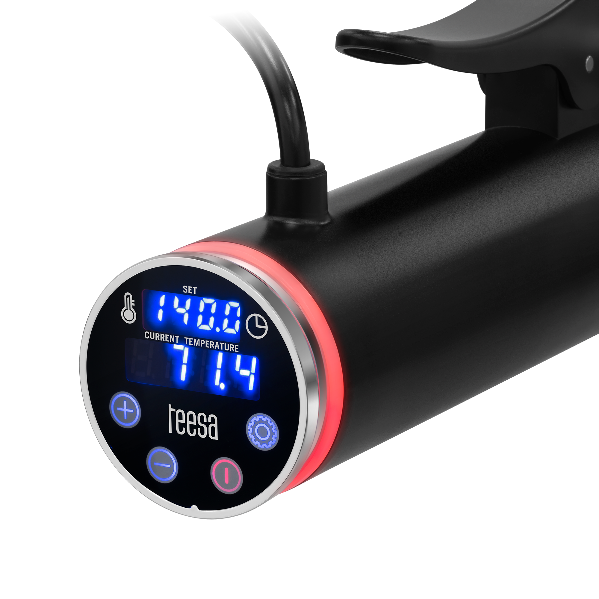 Cyrkulator zanurzeniowy posiada grzałkę, która wprowadzając wodę w cyrkulację umożliwia utrzymanie stałej temperatury. Co ważne, masz możliwość wyboru jednostki, co znacznie ułatwi Ci korzystanie z przepisów z zagranicznych portali, gdzie temperatura podawana jest w skali Fahrenheita.