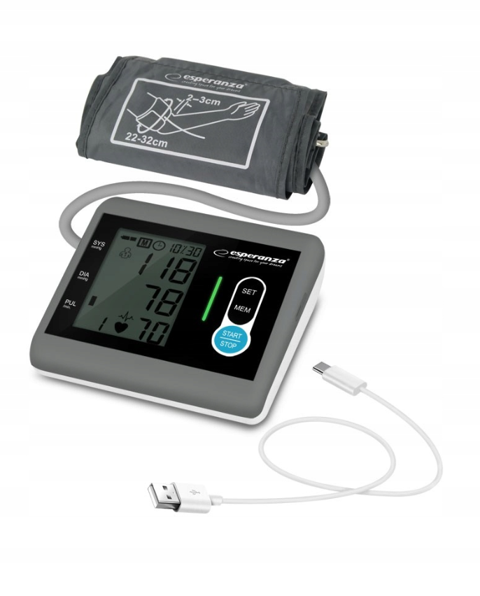 Ciśnieniomierz naramienny Esperanza ARDOR ECB004 to precyzyjne urządzenie medyczne przeznaczone do pomiaru ciśnienia krwi i tętna. Jego funkcja pamięci pozwala zapisać wyniki ostatnich 180 pomiarów, co jest szczególnie przydatne w monitorowaniu zmian. Dzięki pół-automatycznemu modelowi i przyciskowej kontroli, obsługa tego ciśnieniomierza jest prosta i intuicyjna.