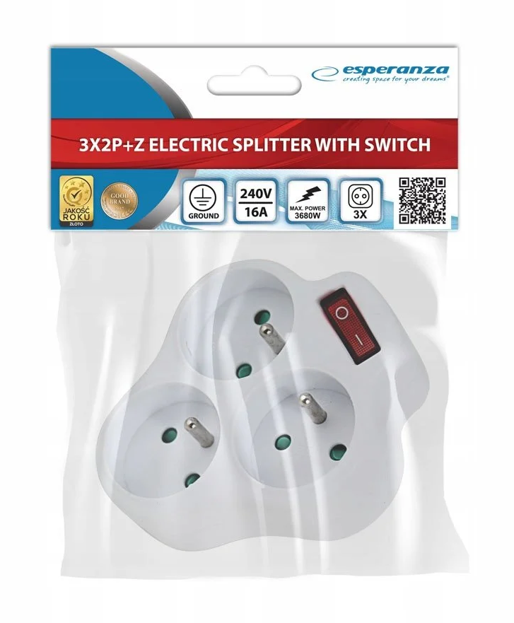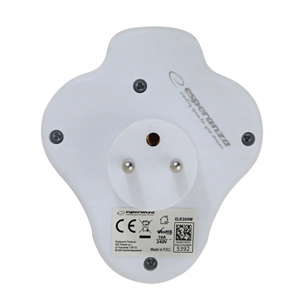 • Rozgałęźnik elektryczny z wyłącznikiem i uziemieniem Esperanza to funkcjonalne rozwiązanie umożliwiające jednoczesne podłączenie do trzech urządzeń elektrycznych.