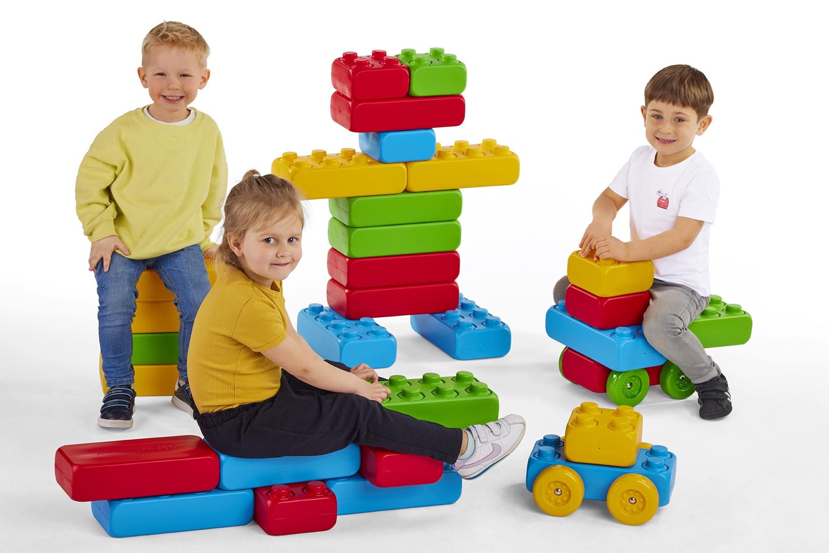 Klocki budowlane "cegły" Marioinex + 2 kółka, 30 elementów