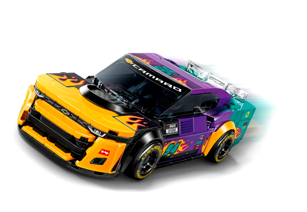 Dziewięciolatki i starsze dzieci oraz fani NASCAR® mogą kolekcjonować, budować, bawić się i ustawiać na półce samochód LEGO® Speed Champions NASCAR® Next Gen Chevrolet Camaro ZL1 (76935). Ten potężny samochód wyścigowy zdobią żywe kolory i płomienie oraz detale inspirowane prawdziwym modelem, biorącym udział w wyścigach NASCAR Cup.
