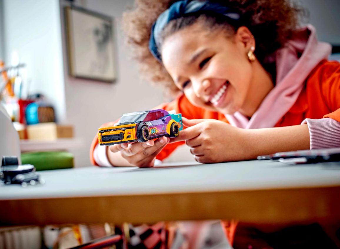 - Kolekcjonerski samochód LEGO® — po zabawie w wyścigi na torze dzieci mogą ustawić model na półce lub stoliku
