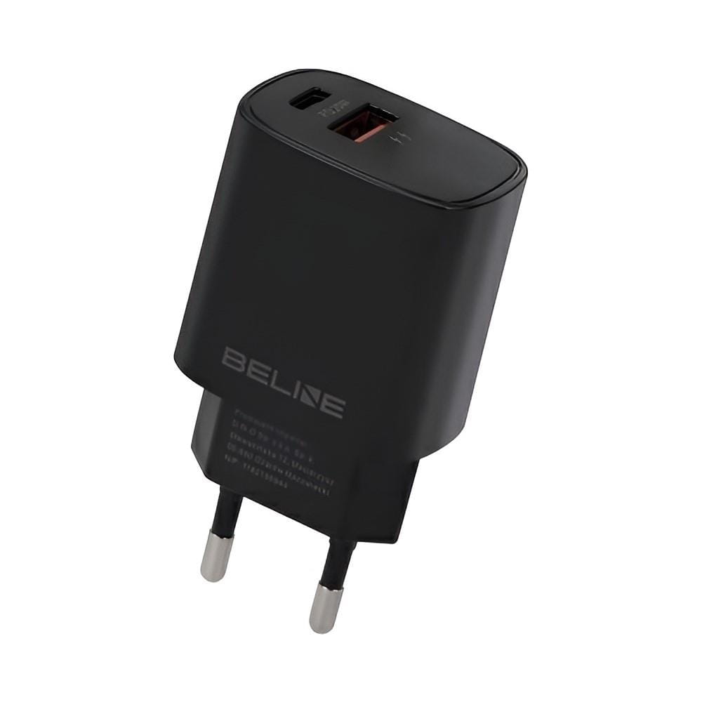 Ładowarka sieciowa Beline 20W 1xUSB-C + 1xUSB PD 3.0 QC 3.0 bez kabla - czarna