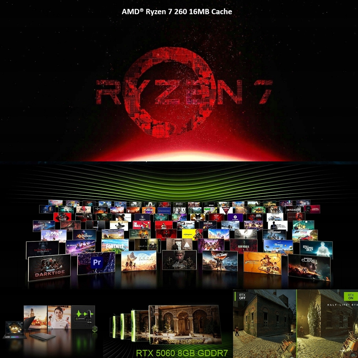 Wysokiej wydajności maszyny gamingowe potrzebują wysokiej wydajności procesorów – wybór procesora AMD® Ryzen 7 260 w zupełności spełnia ten wymóg. To superwydajny komputer do grania i pracy wielozadaniowej, dlatego Twoje gry zawsze będą działać płynnie.
