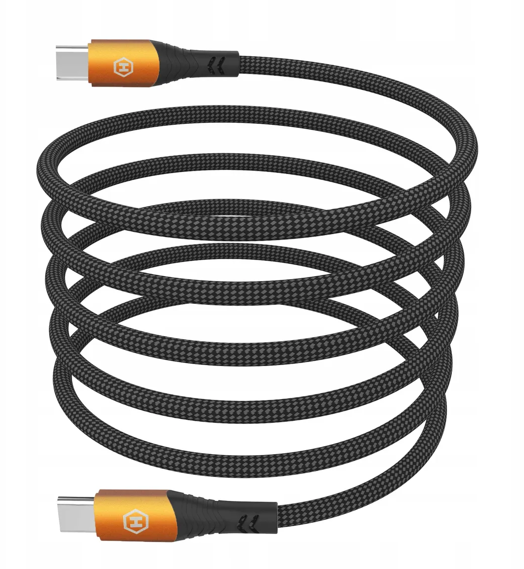 HAMMER Kabel USB C - USB C to solidny przewód o długości 1M, z uniwersalnymi końcówkami USB-C. Mocna konstrukcja z nylonowym oplotem i magnetycznymi elementami sprawiają, że przewód jest zarówno trwały, jak i wygodny w użyciu. Za sprawą kabla naładujesz nie tylko swojego HAMMERA, ale i wiele innych urządzeń ze złączem USB-C.