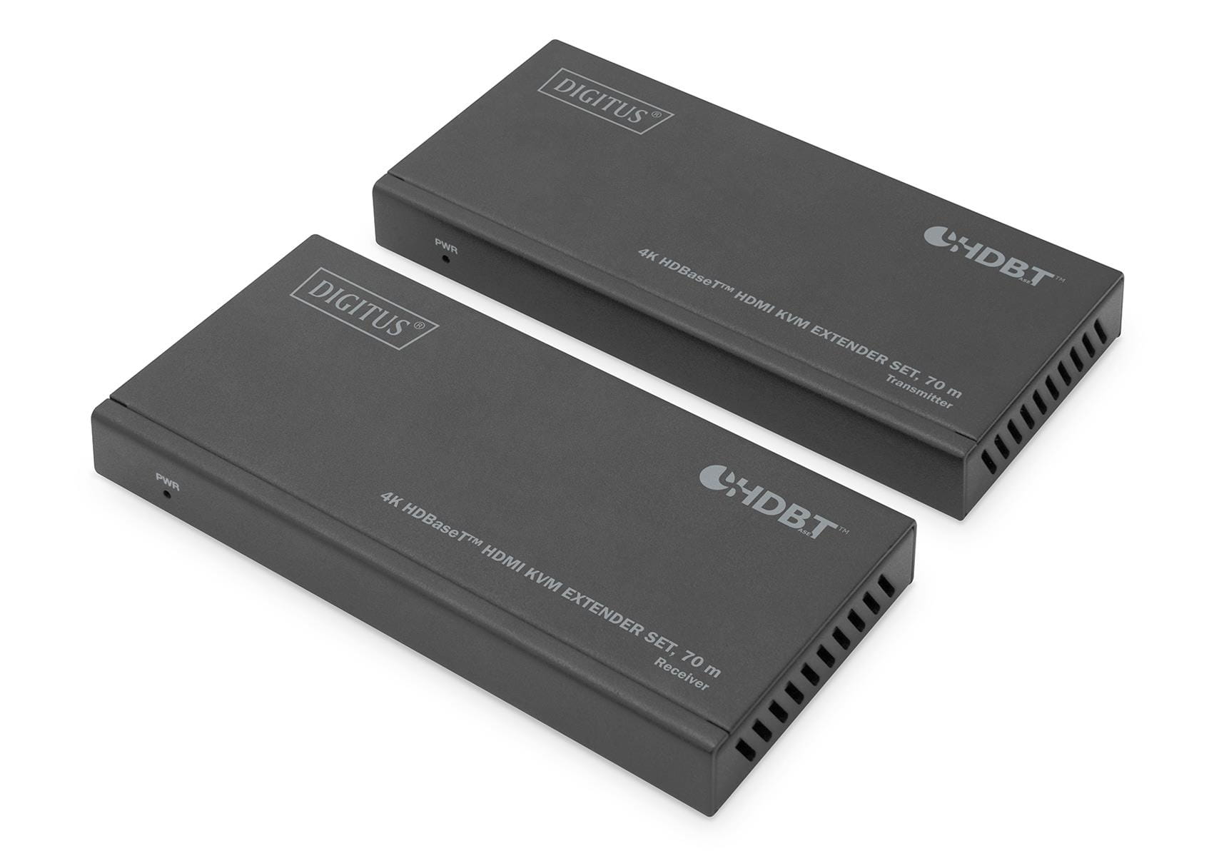 Przedłużacz/Extender KVM DIGITUS HDMI+USB HDBaseT 70m 4K30Hz HDCP 2.2 PoC (Power over Cable) audio IR (zestaw)