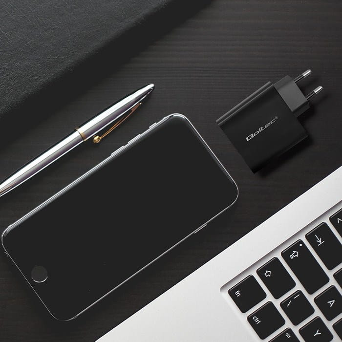 Qoltec Ładowarka Super Quick PD | 1xUSB-C | 1xUSB | 90W | 5-20V | 2.4-4.35A | Czarna