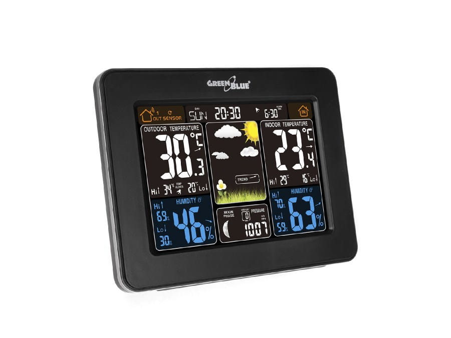 Funkcje pomiaru: Wilgotnościomierz wewnętrzny, Termometr zewnętrzny, Termometr wewnętrzny, Odkryty higrometr