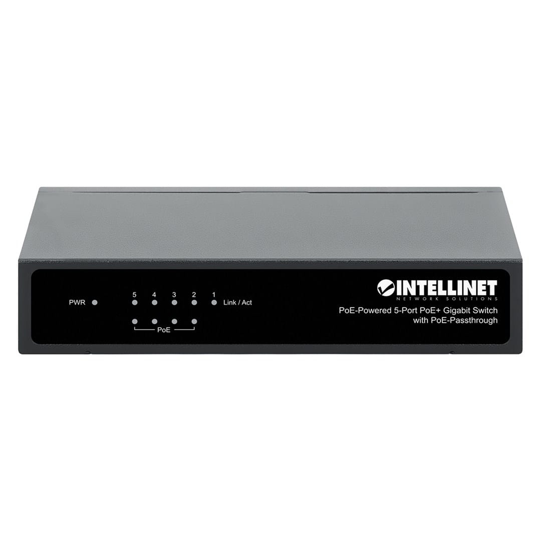 Switch Gigabit 5xPoE Passthrough zasilany PoE lub AC, 68W