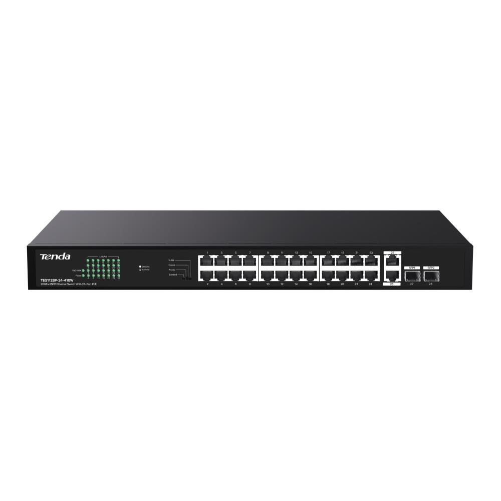 Opis ogólny: Switch niezarządzalny Tenda TEG1128P-24-410W 26x1GbE 2xSFP PoE