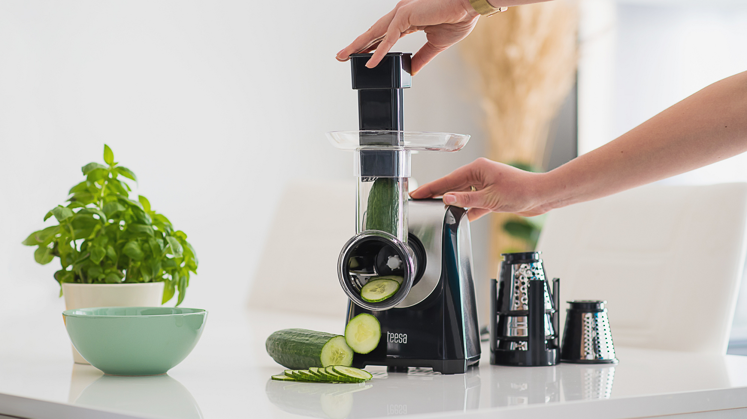 Szykowna czerń, połączona z elementami ze stali nierdzewnej sprawiają, że szatkownica do warzyw TSA3025 to produkt, który powinien znaleźć się w każdej kuchni. Zaletą szatkownicy TSA3025 jest też łatwość obsługi – szybki montaż oraz równie proste czyszczenie.