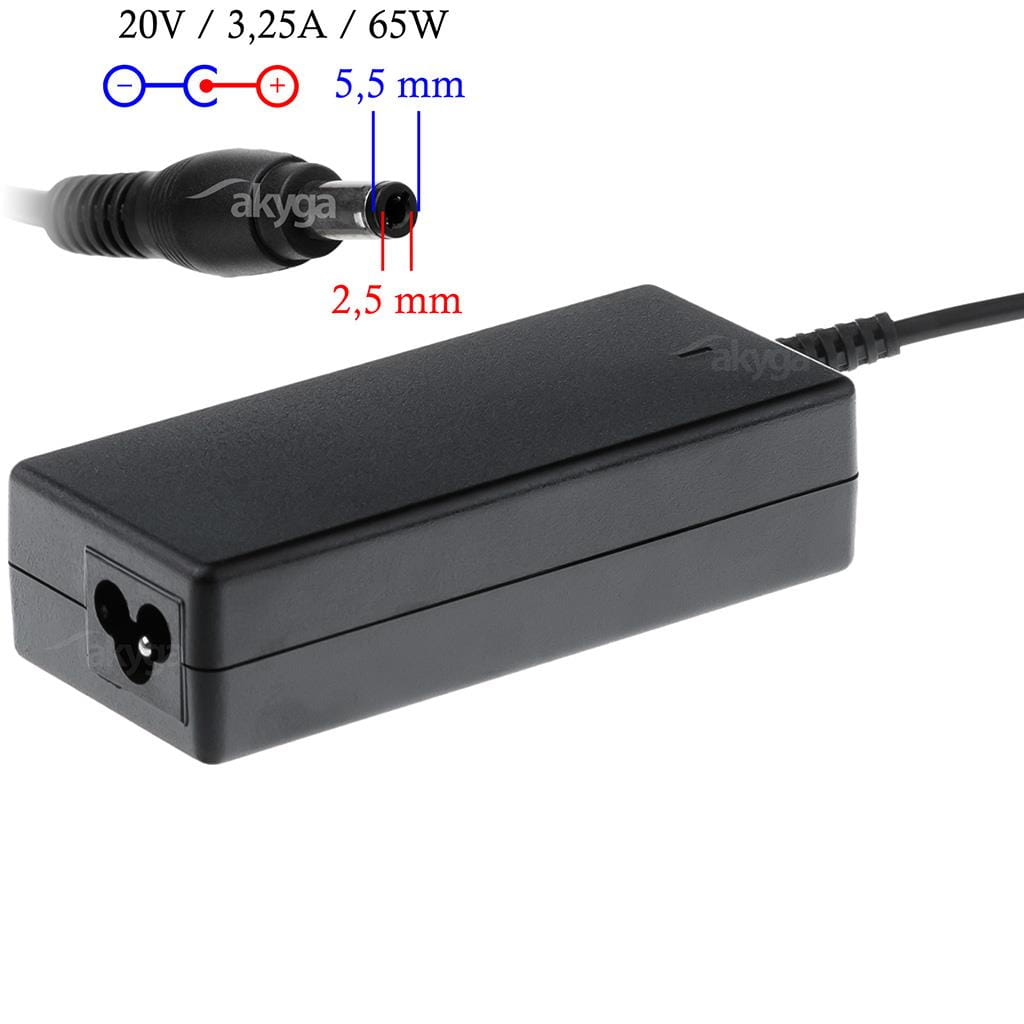 Opis ogólny: Zasilacz sieciowy Akyga AK-ND-17 do notebooka 20V/3,25A 65W 5.5x2.5 mm