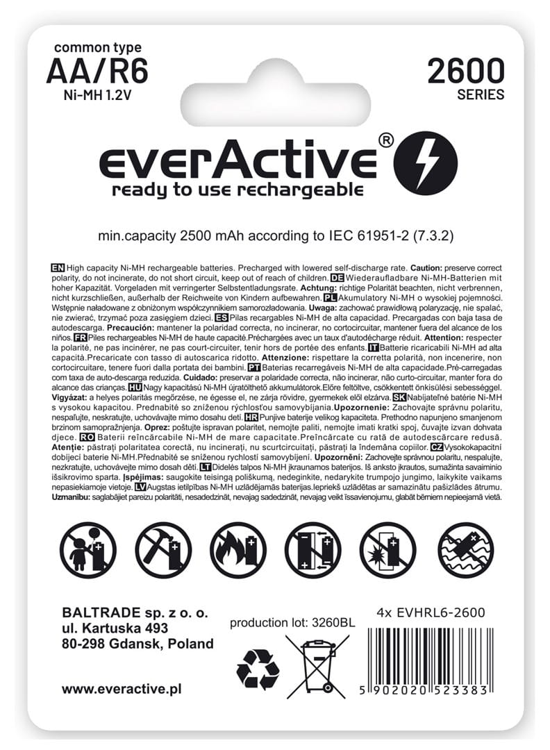 Zestaw akumulatorków everActive Professional line EVHRL6-2600 (2600mAh ; Ni-MH)